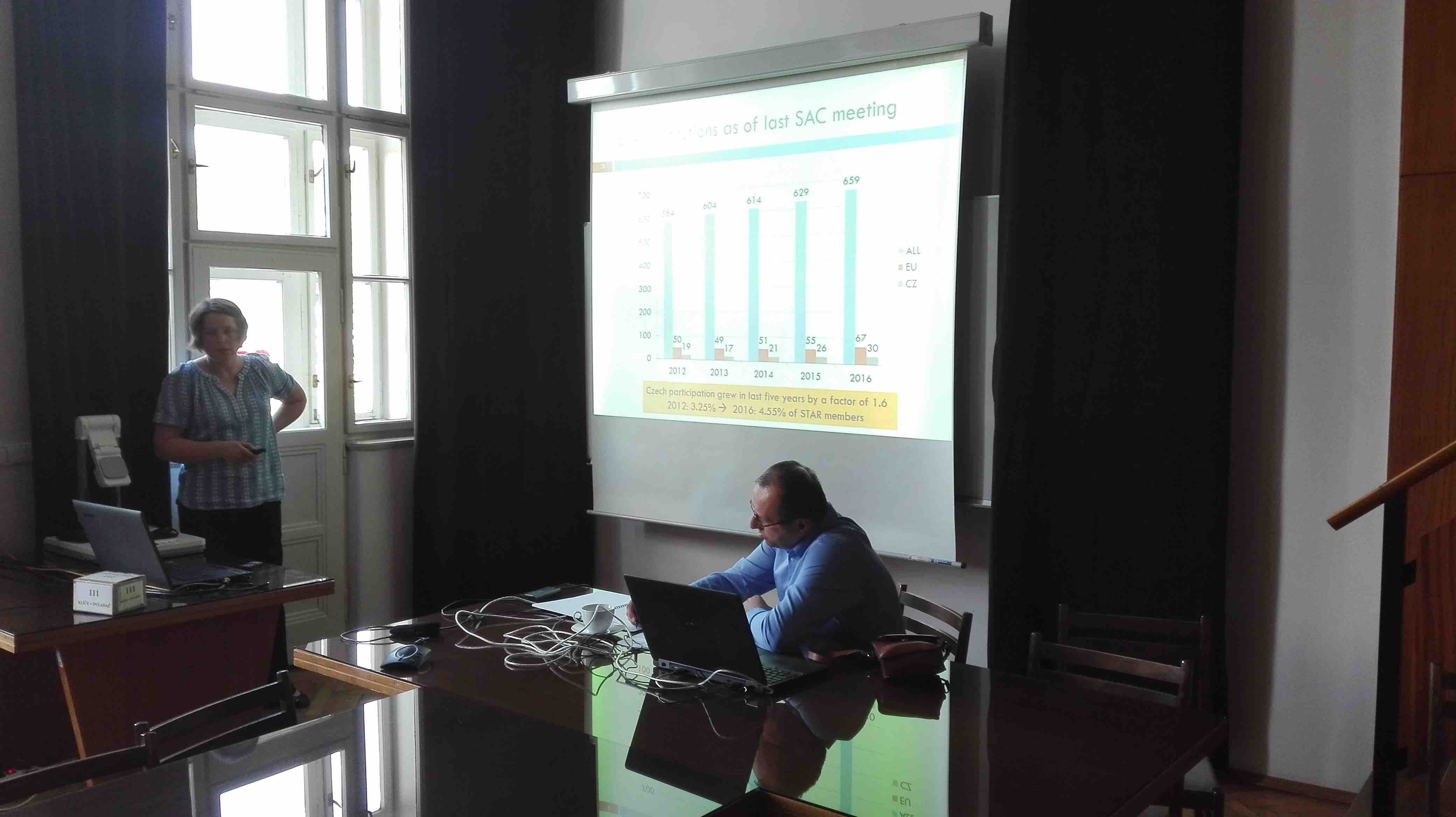 Today, 15.6.2017, at the FNSPE CTU in Prague the meeting of SAB of infrastructure BNL-CZ was held. The recent activities and future plans of STAR, PHENIX, sPHENIX and phenomenology conducted at CTU in Prague, CU in Prague and NPI CAS were presented. The members of SAB are prof. Dr. Alberica Toia (IKF Goethe-Universität), prof. RNDr. Pavel Cejnar, DSc.(CU in Prague) and doc. Mgr. Alexander Kupčo, Ph.D.(Institute of Physics CAS). The physics program of the infrastructure and services provided to the users of BNL-CZ were recognized as very important and very satisfactory.